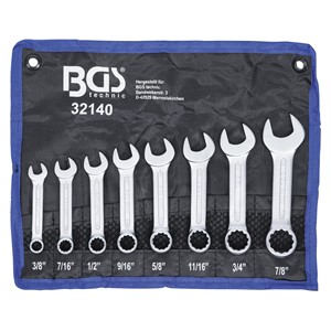 BGS Set okasto-viličastih ključeva | ekstra kratki | inčni | 3 /8 - 7 /8 | 8-dijelni