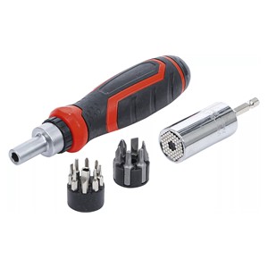 BGS Set za savinuti odvijač bitova | s ustavljačkom zakretnom ručkom, prebaciv | 14-dijelni