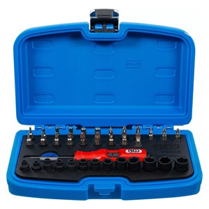 BGS Precíziós behajtófej- /multi dugókulcskészlet | racsnis-nyeles hajtószárral behajtófejekhez, átkapcsolható | 17 darabos