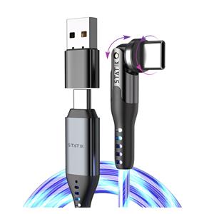 STATIK PowerPivot Pro rotating 2-in-1 USB-C Cable Blue Glow 2m