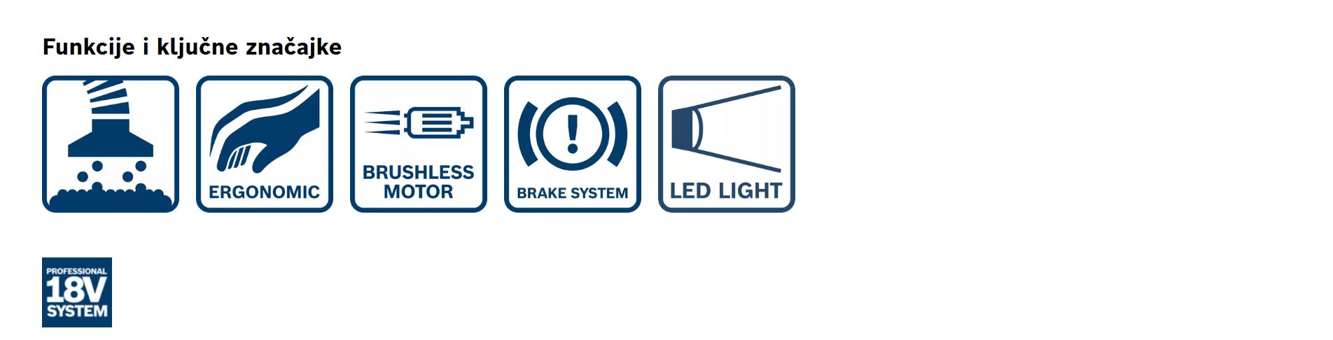 | Dodatni podaci | Broj okretaja u praznom hodu 5.800 – 6.300 min-1 Promjer provrta lista pile 20 mm Težina bez akumulatora 2,2 kg |