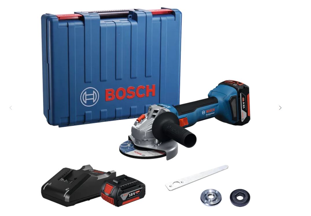 | Uključeno u isporuku | Pomoćna ručka Potporna prirubnica Ključ s dvije rupe Zaštitni štitnik Sigurnosna matica Brzi punjač GAL 18V-40 Professional Torba za nošenje 2 x baterija GBA 18V 4.0Ah  |