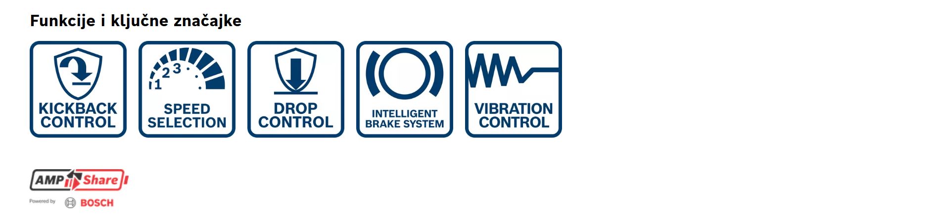 | Dodatni podaci | Napon akumulatora 18,0 V Broj okretaja u praznom hodu 3.000 – 9.000 min-1 Promjer ploče 125 mm Navoj brusnog vretena M14 Provrt, promjer 22,23 mm Težina bez akumulatora 1,7 kg X-LOCK Ne BITURBONe |