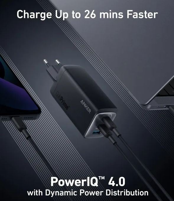 S 2 USB-C priključka i jednim USB-A priključkom možete istovremeno puniti telefon, tablet i prijenosno računalo s jednog punjača. Spojite jedan uređaj za punjenje do 100 W.