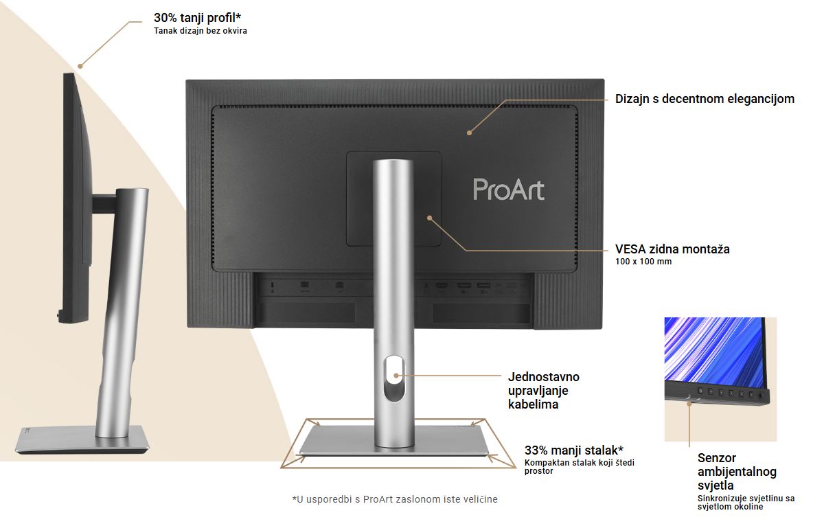 Ugrađeni senzor ambijentalnog svjetla sinkronizira svjetlinu i temperaturu boje zaslona s promjenama ambijentalnog osvjetljenja