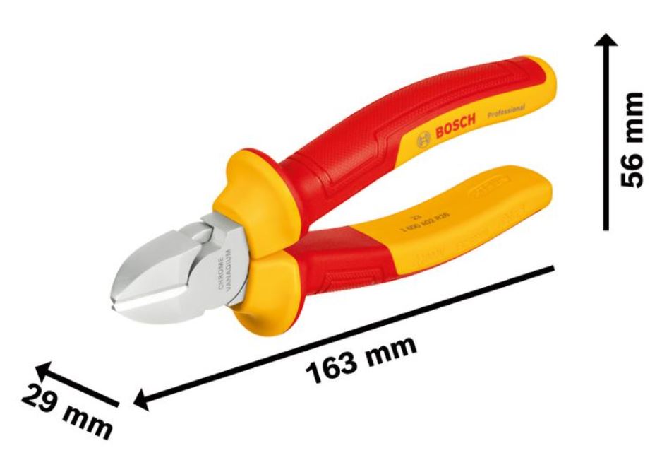 | Osnovni podaci | Otpornost na hrđu Vrsta kliješta Dijagonalni bočni rezač Za jednoručnu upotrebu Rameni dio sa zaštitom od klizanja Težina 0,228 kg Ojačani rezni rubovi Dizajn s visokom razinom poravnavanja Izvedba materijala Krom i vanadij Maksimalni napon 1.000 V VDE Ergonomska ručka Mekani rukohvat Vlačna čvrstoća obične čelične žice 1.600 N/mm²  |