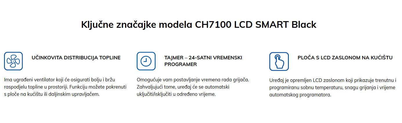 Model CH7100 LCD SMART je elegantna konvektorska grijalica koji je dizajnirna da se uklopi u različite vrste prostorija.