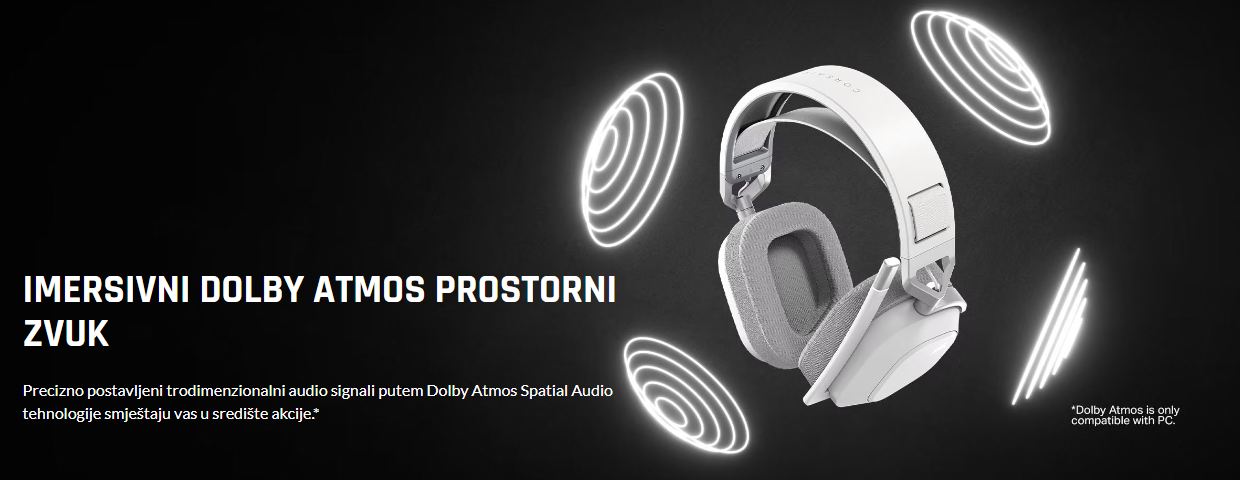 CORSAIR HS80 MAX igraće slušalice s ultrabrzom Slipstream bežičnom tehnologijom pružaju detaljno audio iskustvo zahvaljujući posebno podešenim 50 mm neodimijskim audio drajverima. Dolby Atmos uranja slušatelje u igru trodimenzionalnim zvukom na računalu, dok omnidirekcionalni mikrofon emitirane kvalitete snima vaš glas sa zapanjujućom jasnoćom. Sonarworks SoundID tehnologija omogućuje vam prilagođavanje zvuka slušalica vašim osobnim preferencijama. Jastučići za uši od memorijske pjene i plutajući dizajn trake za glavu bez točaka pritiska nude izvrsnu udobnost, dok robusna konstrukcija ojačana aluminijem osigurava izdržljivost. Povezivanje je putem USB-a, bilo žično s računalom za 24-bitni/96 kHz zvuk ili bežično s računalom, PS5 i PS4.