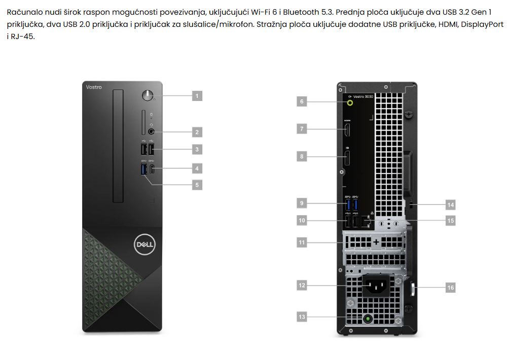 Dell Vostro 3030SFF je kompaktno uredsko računalo koje kombinira visoke performanse s elegantnim dizajnom.