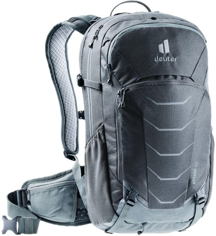 Novi Deuter Attack je ruksak s TÜV/GS certifikatom koji povećava sigurnost brdskih biciklista na najzahtjevnijim stazama. Uklonjivi SAS-TEC štitnik za leđa s višestrukom zaštitom od udaraca (ovisno o jačini udarca) sprječava ozljede. Visoko postavljeni remeni čvrsto i sigurno prianjaju bez obzira koliko teška bila vožnja. Kada se vozite uzbrdo, kaciga i zaštitna oprema brzo se mogu pričvrstiti na vanjsku stranu ruksaka.