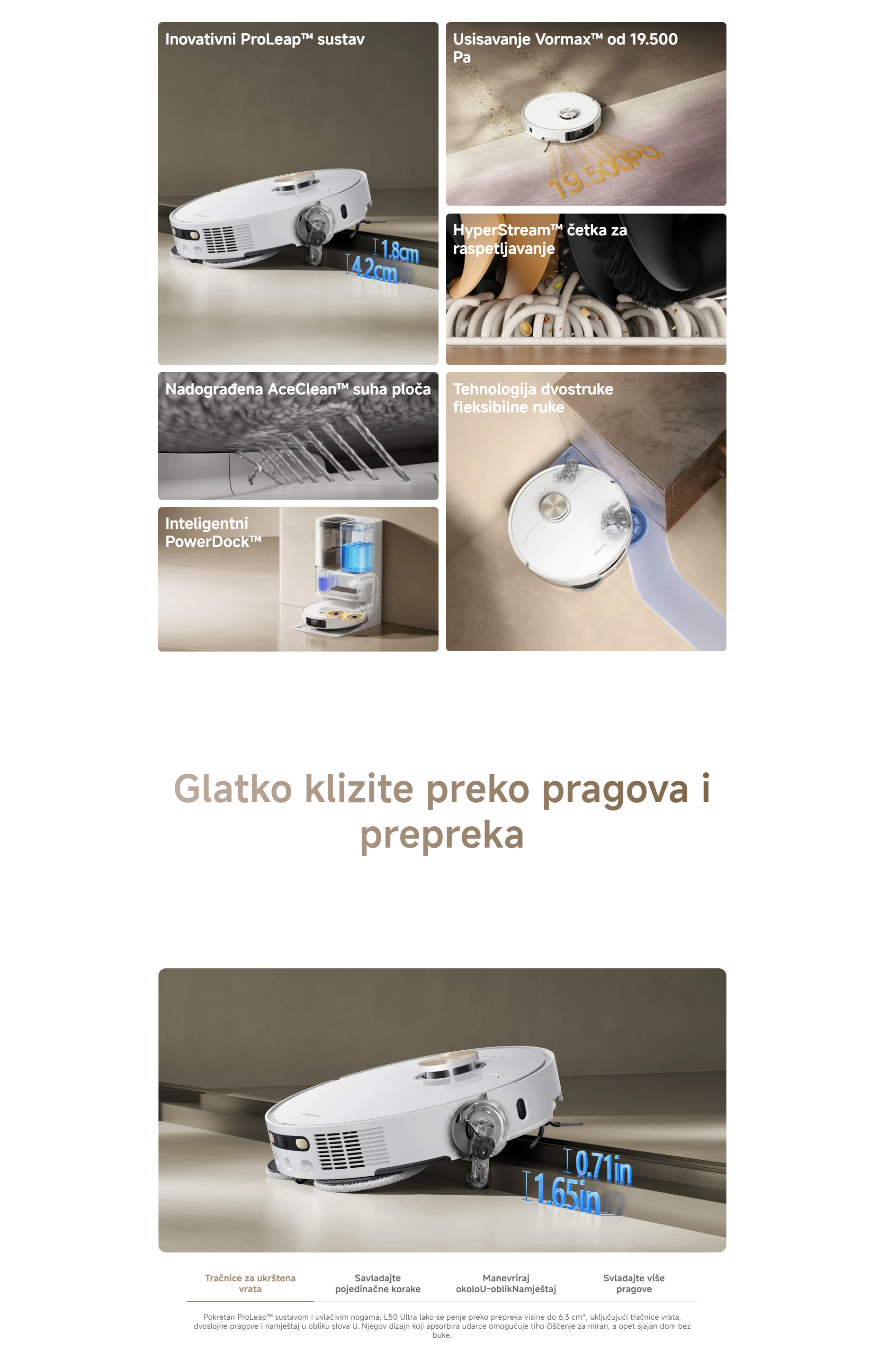 Težina | 4,44 kg - robotski usisavač 9,2 kg - bazna stanica |