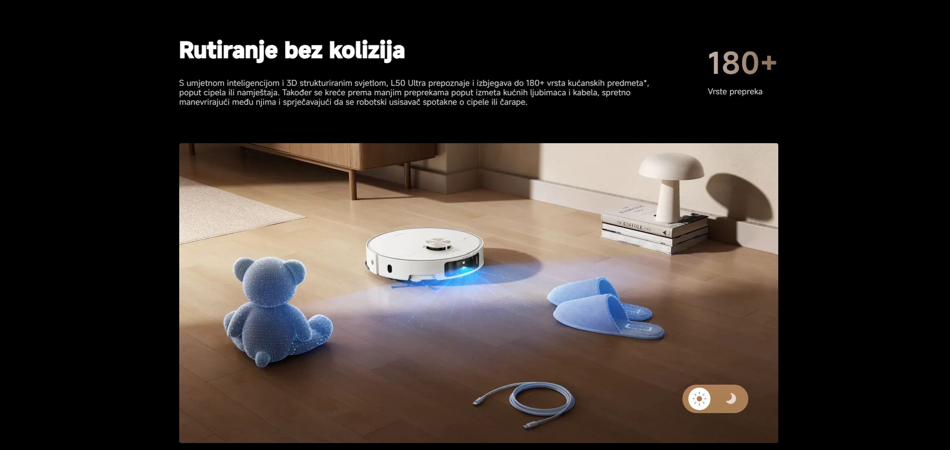 Dimenzije | 348 x 352 x 97 mm - robotski usisavač 457 x 340 x 589 mm - bazna stanica |