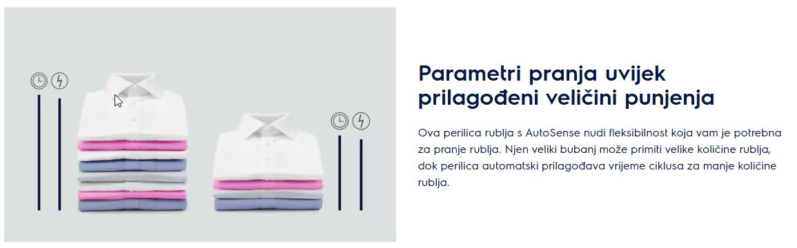 Njen veliki bubanj može primiti velike količine rublja,dok perilica automatski prilagođava trajanje ciklusa,