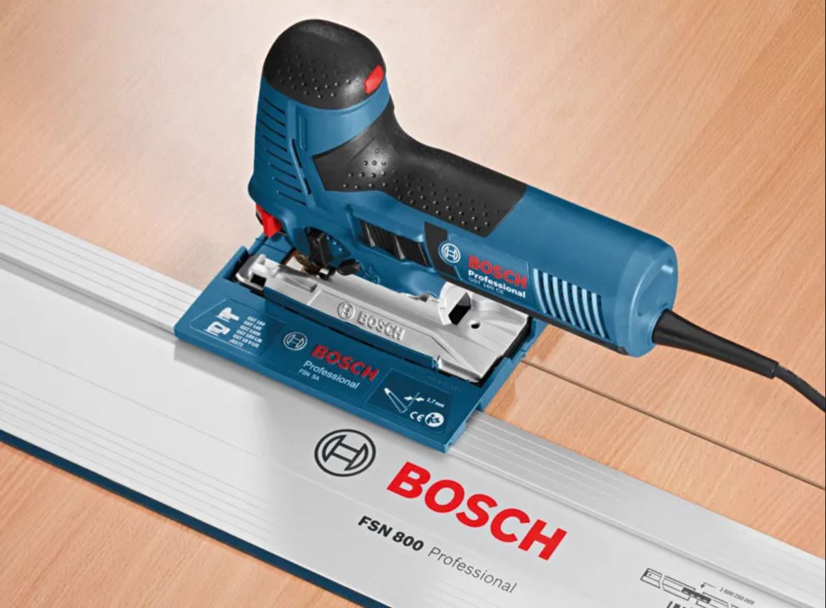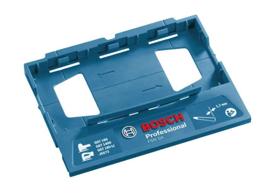 Adapter FSN SA Professional omogućuje navođene ravne rezove ubodnim pilama na vodilicama. Ubodne pile jednostavno se priključuju i oslobađaju s vodilica bez upotrebe dodatnog alat, što omogućuje jednostavan rad i štedi vrijeme. Ovaj adapter prikladan je za mnoštvo kombinacija ubodnih pila s vodilicama s vodilicama Bosch FSN, kao i sustavima vodilica Mafell i Festool, što omogućuje savršeno precizne ravne rezove. Adapter se može upotrebljavati s ubodnim pilama GST 160 Professional, GST 140 Professional, GST 18V-LI Professional, GST 18V-LI S Professional, GST 18V-LI B Professional, GST 18V-155 Professional i GST 18V-125 Professional.