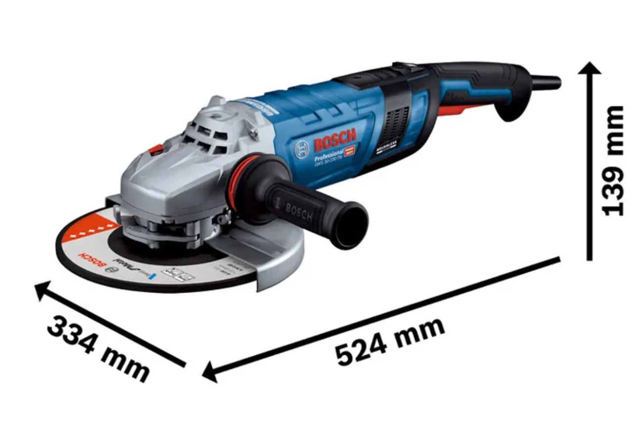 | Osnovni podaci | Nazivna ulazna snaga 2800 W Broj okretaja u praznom hodu 6.500 min-1 Promjer ploče 230 mm Napon, električni 230 V Navoj brusnog vretena M14 Glavna ručka Rep Gumeni brusni tanjur, promjer 230 mm Lončasta četka, promjer 100 mm Težina 5,9 kg Prekidač Prekidač PROtection |