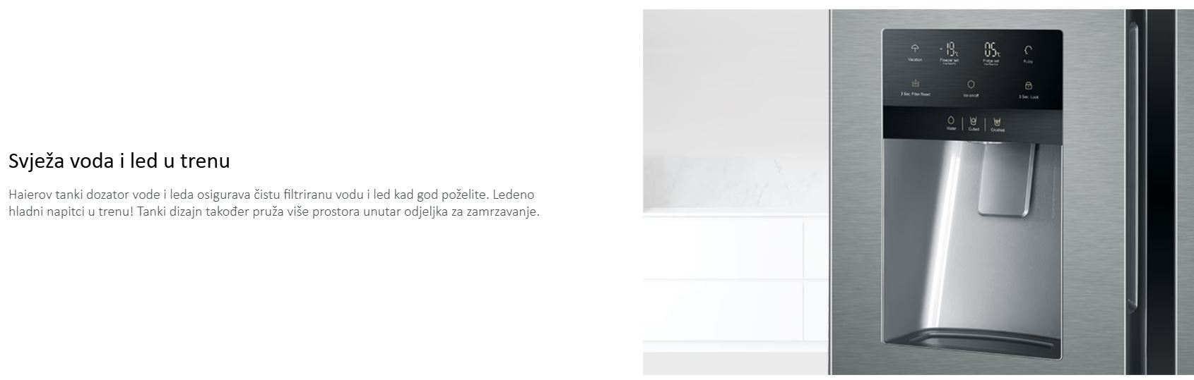 S širinom od 90 cm, Haierovi hladnjaci Side By Side 90 nude veliki kapacitet uz jednostavan pristup i hladnjaku i zamrzivaču.