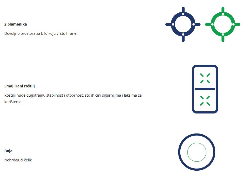 Dolazi sa mlaznicama za prirodni plin i LPG (propan-butan),što pruža fleksibilnost pri instalaciji,dok