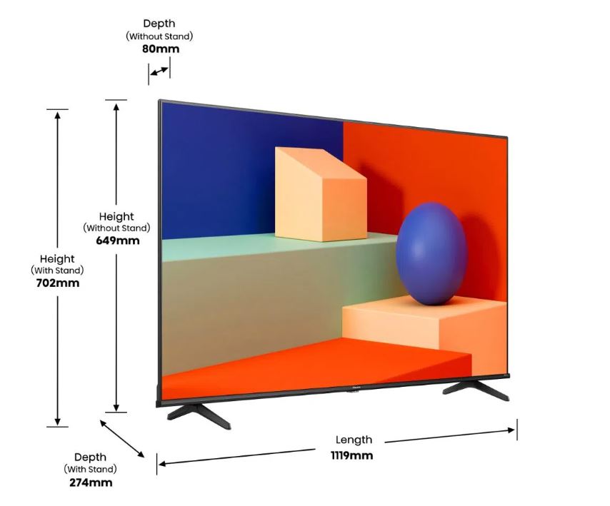 | Dimenzije televizora s postoljem Š x V x D | 111,9 × 70,2 × 27,4 cm | ||||||||