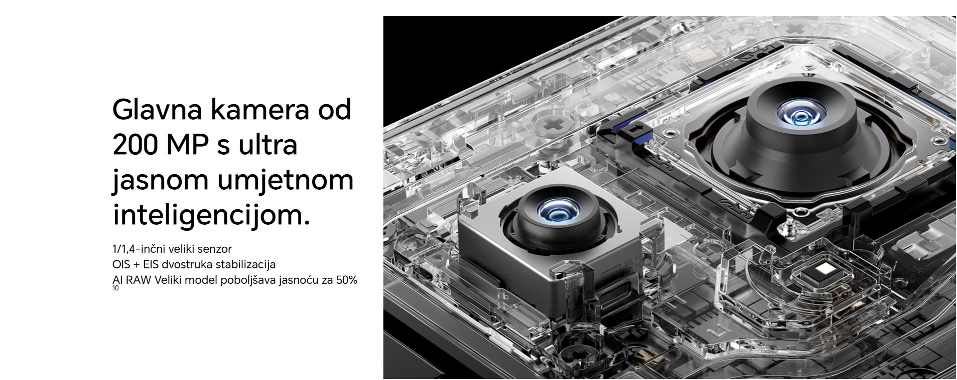 Kamera | 200MP ultra jasna AI glavna kamera (f/1.9, OIS) 12MP ultraširokokutna kamera (f/2.2) Prednja kamera od 50 MP (otvor blende f/2.0) |