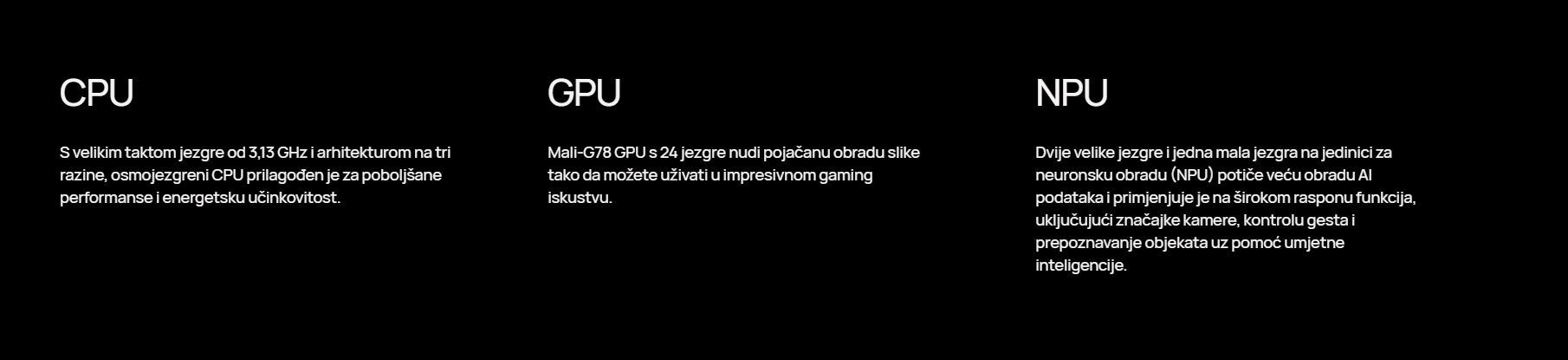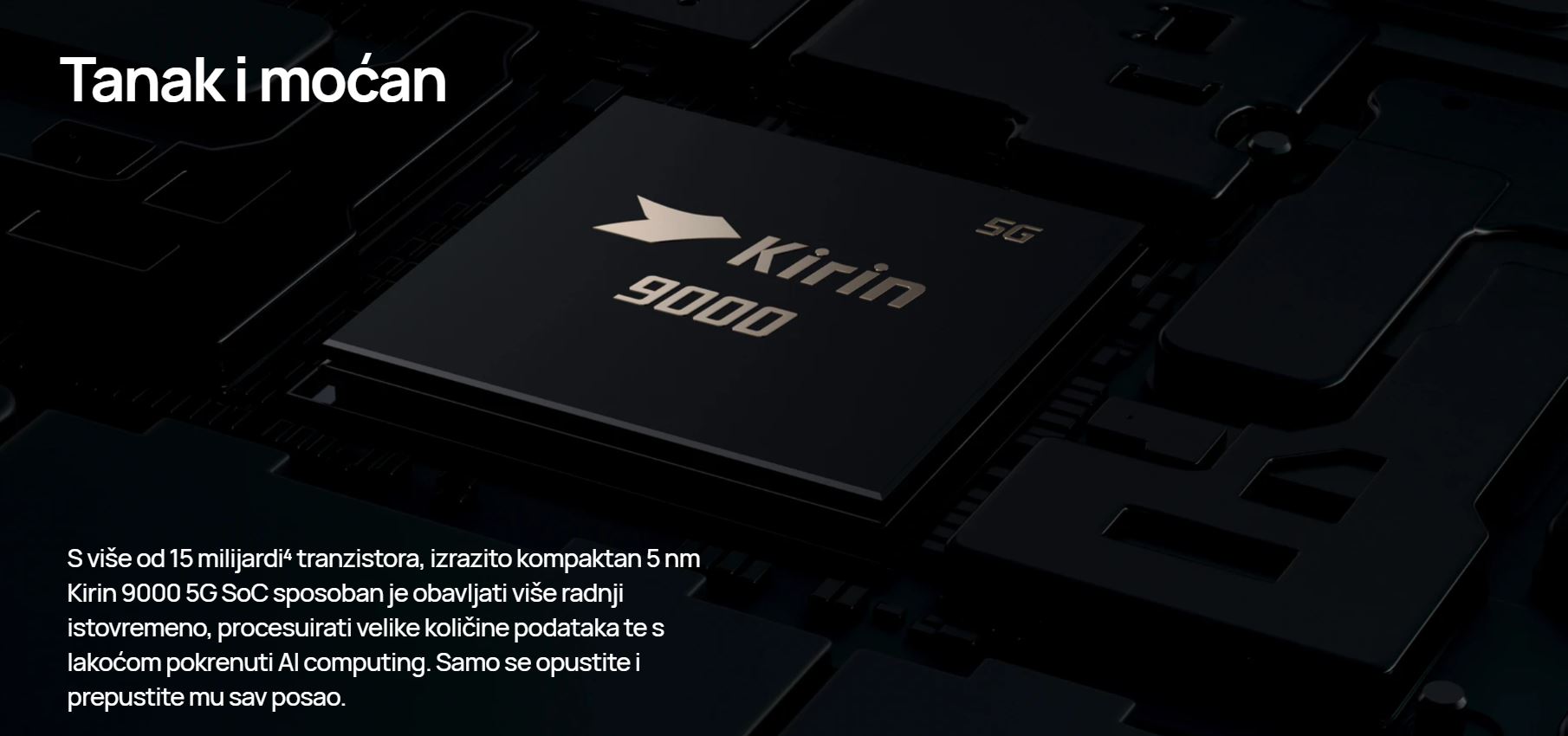 | Procesor | Kirin 9000 5G (5 nm) CPU Osmojezgreni (1x3,13 GHz Cortex-A77 i 3x2,54 GHz Cortex-A77 i 4x2,05 GHz Cortex-A55) GPU Mali-G78 MP24 |