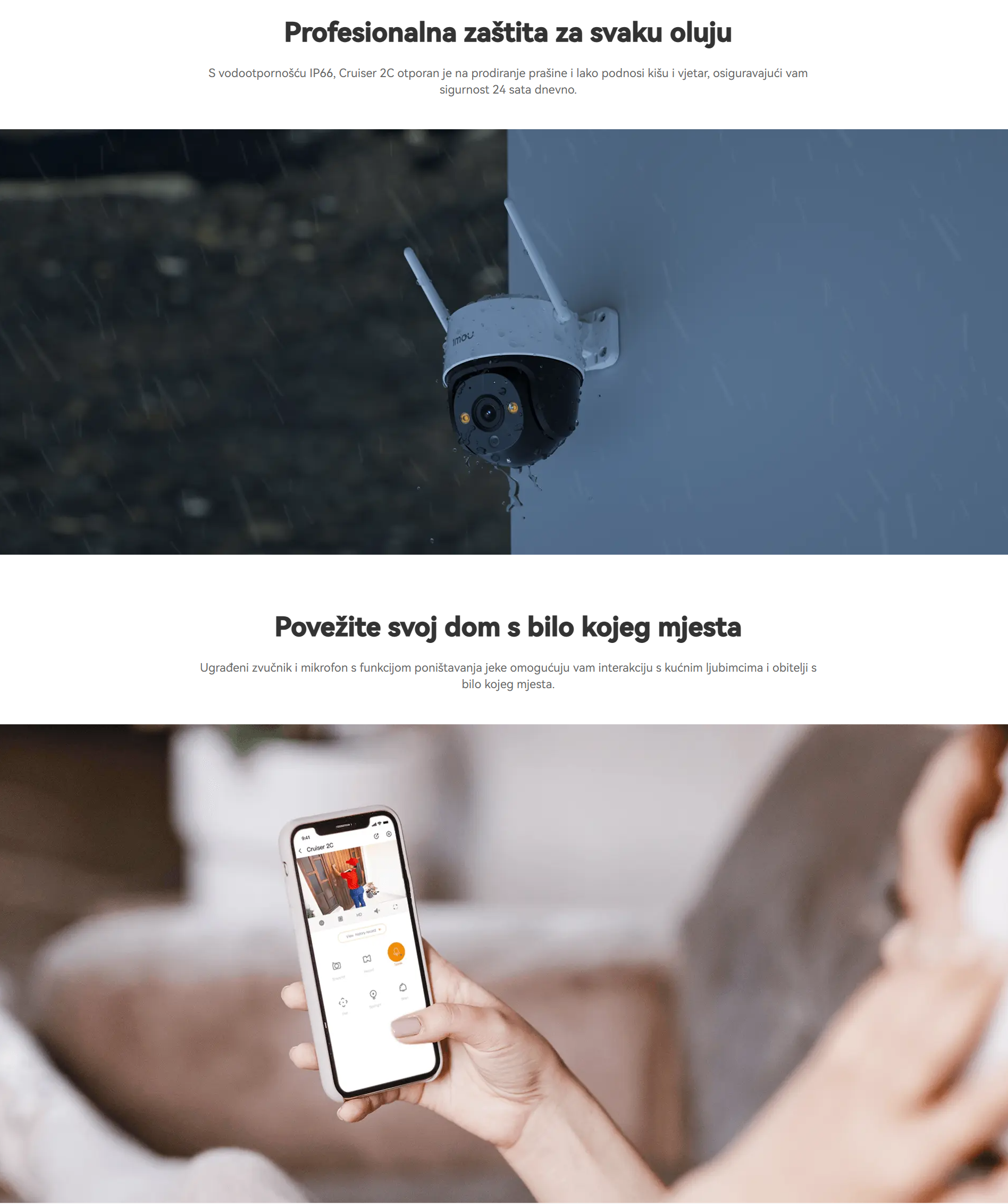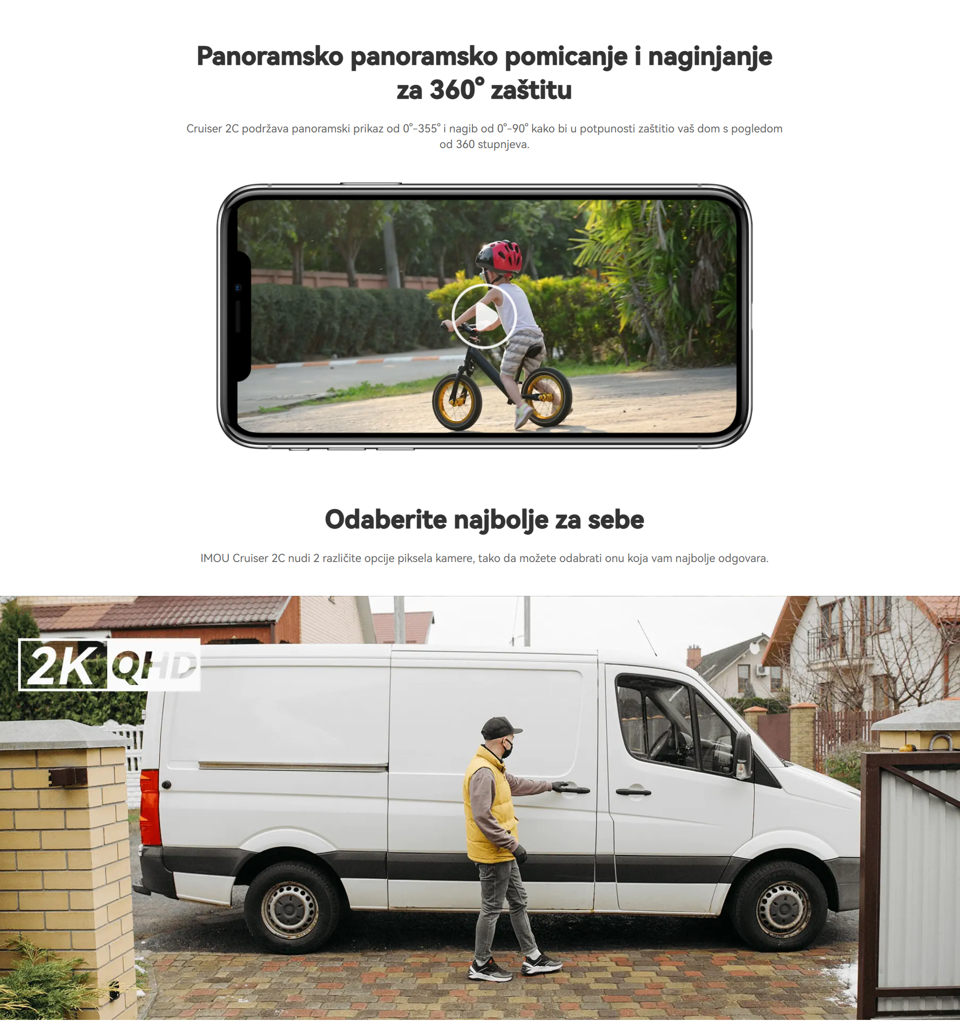 | Mreža | 1 x 100 Mbps Ethernet priključak Wi-Fi: IEEE802.11b/g/n/ax, dvostruka antena Imou aplikacija: iOS, Android ONVIF  |