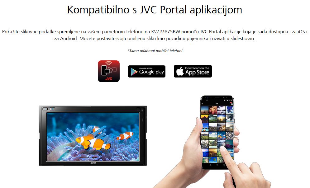 Android Auto razvijen je s naglaskom na sigurnost i minimiziranje ometanja tijekom vožnje. Pomoću jasno strukturiranog korisničkog sučelja ili intuitivnog glasovnog upravljanja, mnoge aplikacije za pametne telefone mogu se praktično koristiti u vozilu i udobno upravljati putem velikog zaslona osjetljivog na dodir JVC moniceivera. Zahvaljujući WiFi funkciji, kompatibilni Android pametni telefoni također se mogu povezati i njima upravljati potpuno bežično. 1