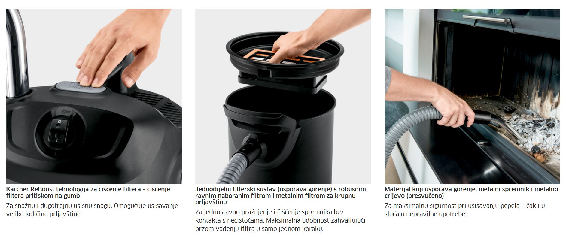 Kärcher AD 2 model 1.629‑711.0 je kompaktan i izdržljiv usisavač koji je osmišljen posebno za sigurno i temeljito uklanjanje hladnog pepela iz kamina, peći i roštilja.