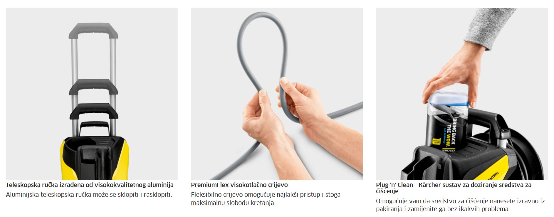 Osim toga, lako dostupan spremnik za dodatke i integrirani sustav spremanja crijeva čine ovaj model urednim i funkcionalnim.