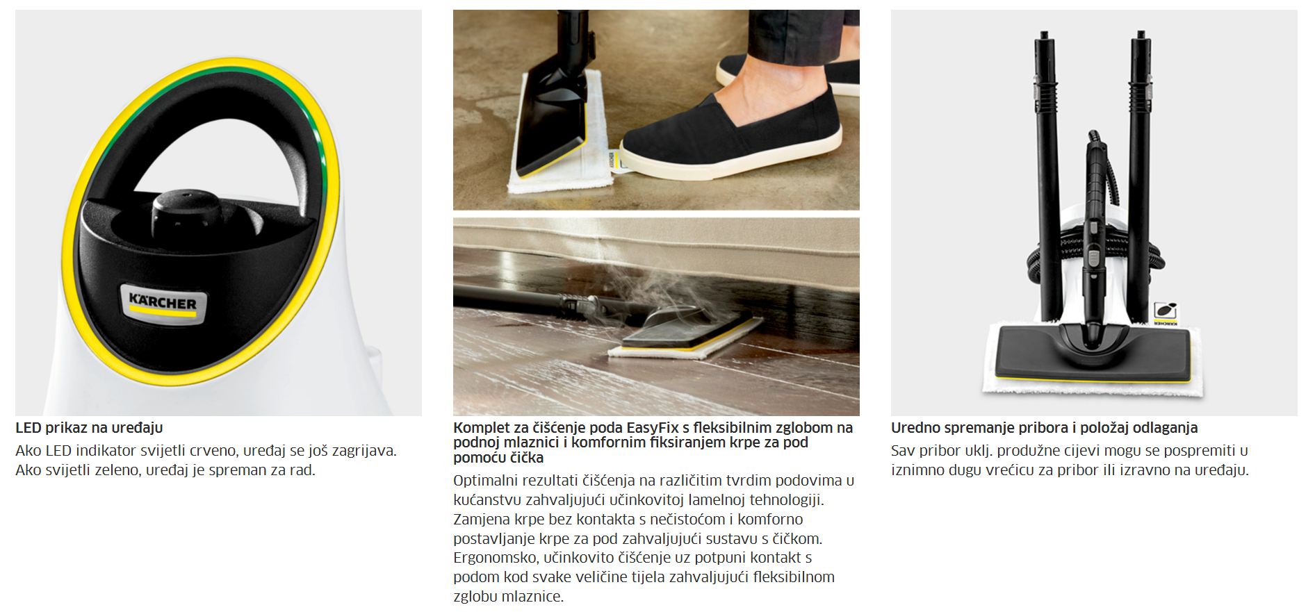 Zahvaljujući dvostupanjskoj regulaciji pare, podešavate intenzitet čišćenja prema tipu podloge i stupnju zaprljanosti.