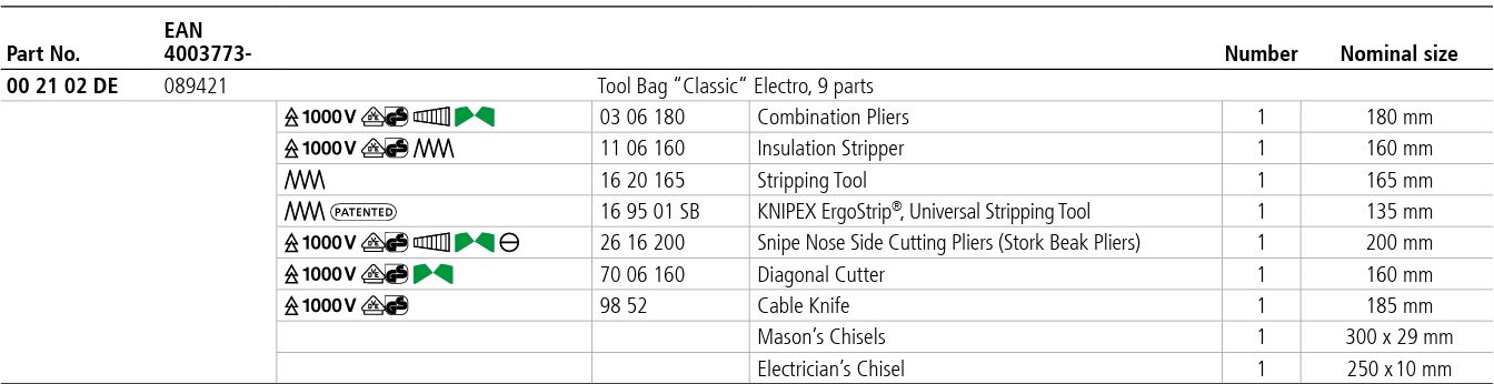 Knipex "CLASIC" set za električare 00 21 02 DE