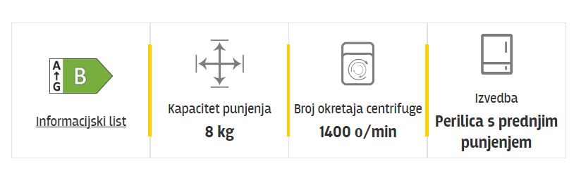 | Maksimalna temperatura pranja | 90°C (pamuk) |