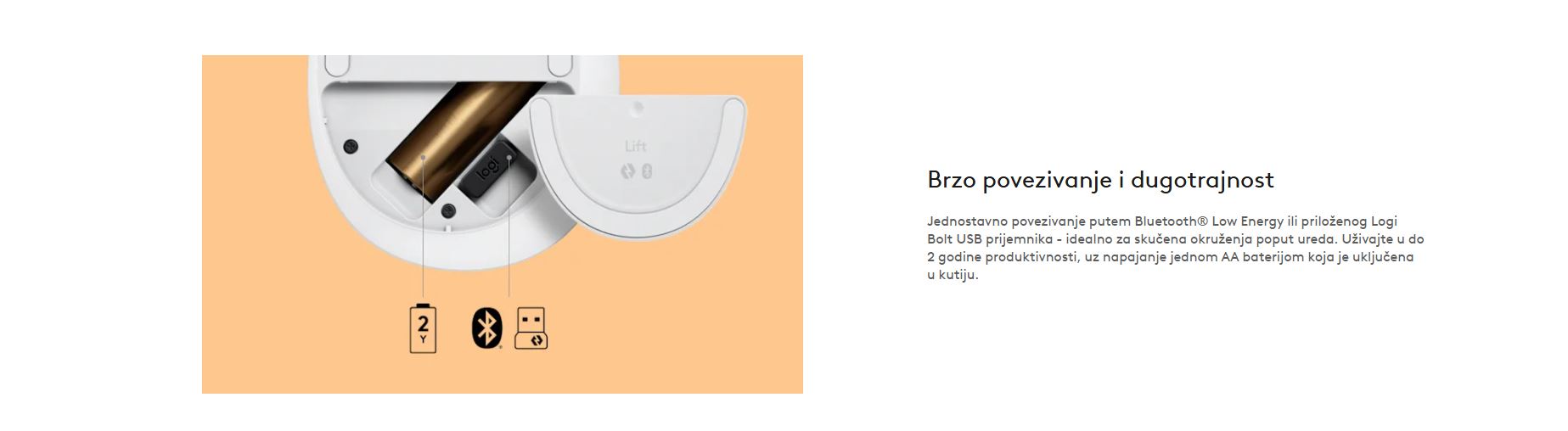| Podrška za vrstu veze | Logi Bolt USB prijemnik (uključen) Bluetooth tehnologija niske energije |