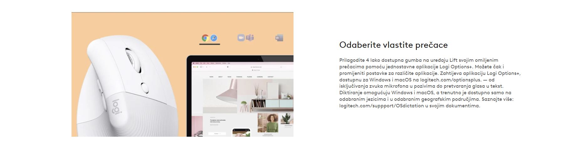 | Aplikacija za prilagodbu | Podržava Logi Options+ na Windowsima i macOS-u |