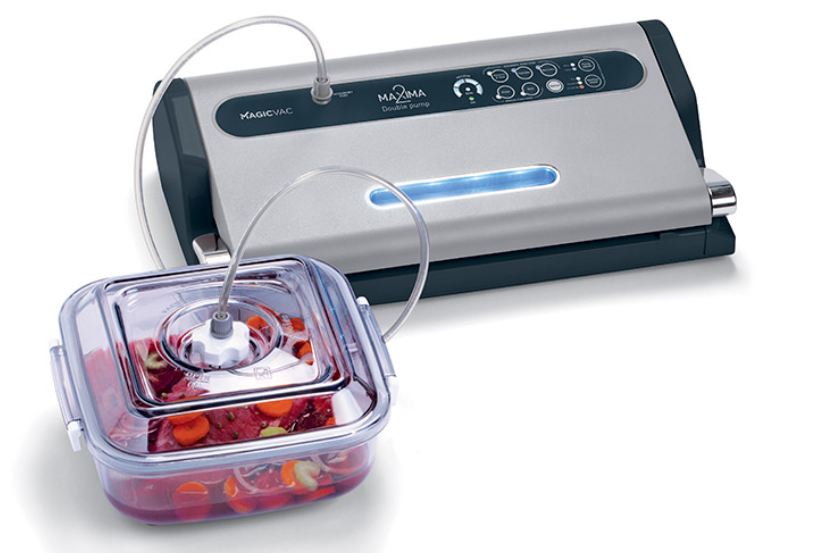 Vakuumski aparat za zatvaranje MAGICVAC Maxima 2 nudi brojne dodatne funkcije, kao što su tehnologija 'ActiSeal 3D' za automatsko podešavanje zatvaranja i dvostruka brzina usisavanja. Specifičan ciklus za stvaranje vakuuma u spremnicima i integrirano spremište kabela zaokružuju cjelokupni paket.
