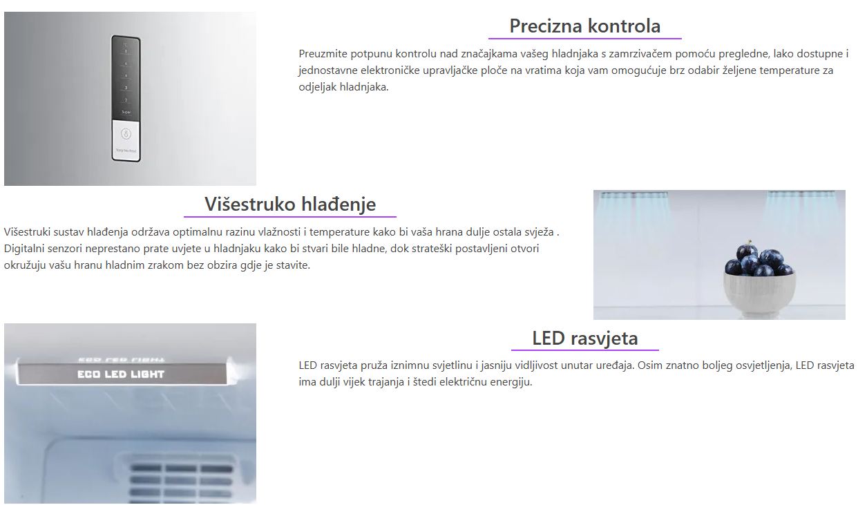 Neto zapremina 310L ukupno | Hladnjak 224L Zamrzivač 86L |