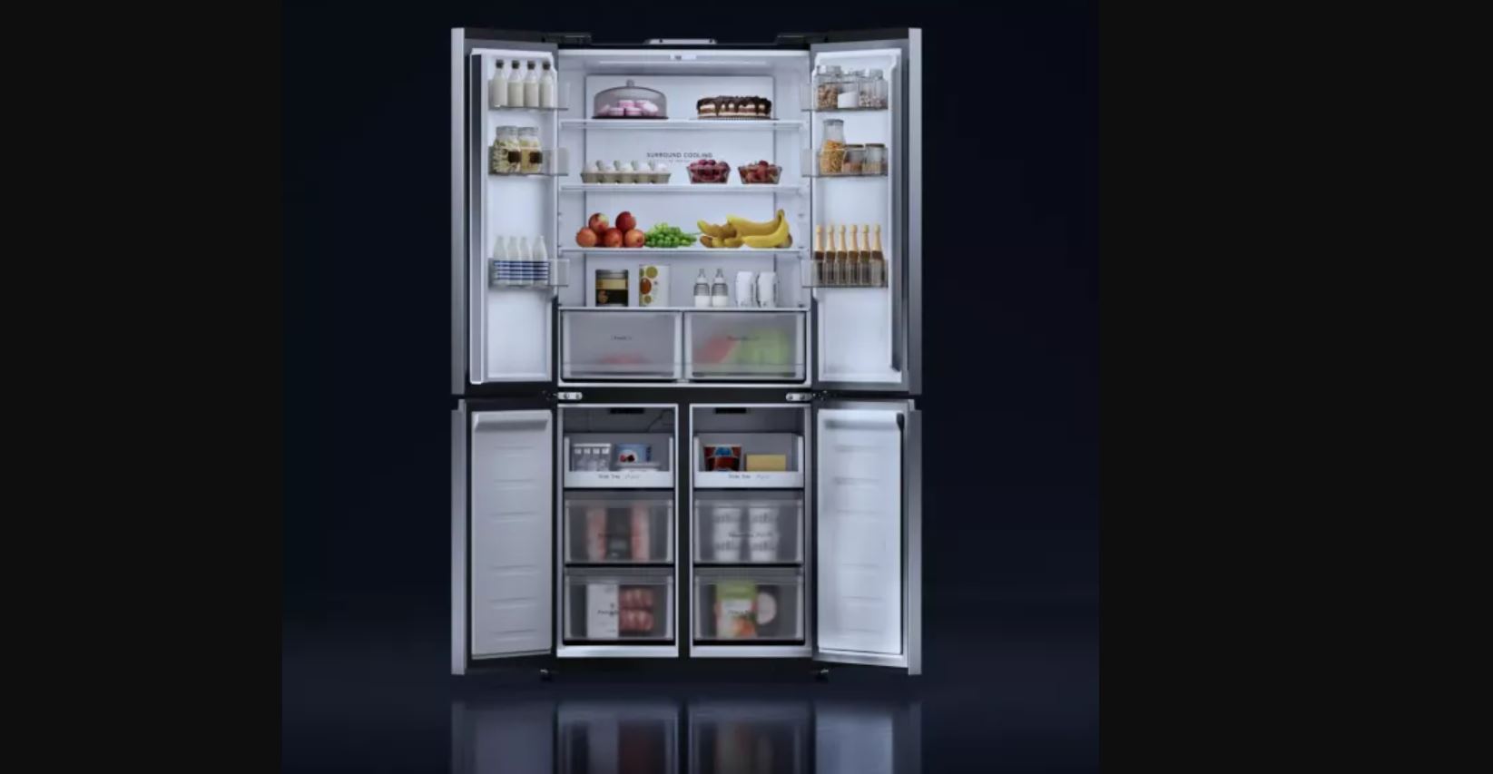 Prostrani hladnjak s četvora vrata i impresivnim kapacitetom od 502 litre.
