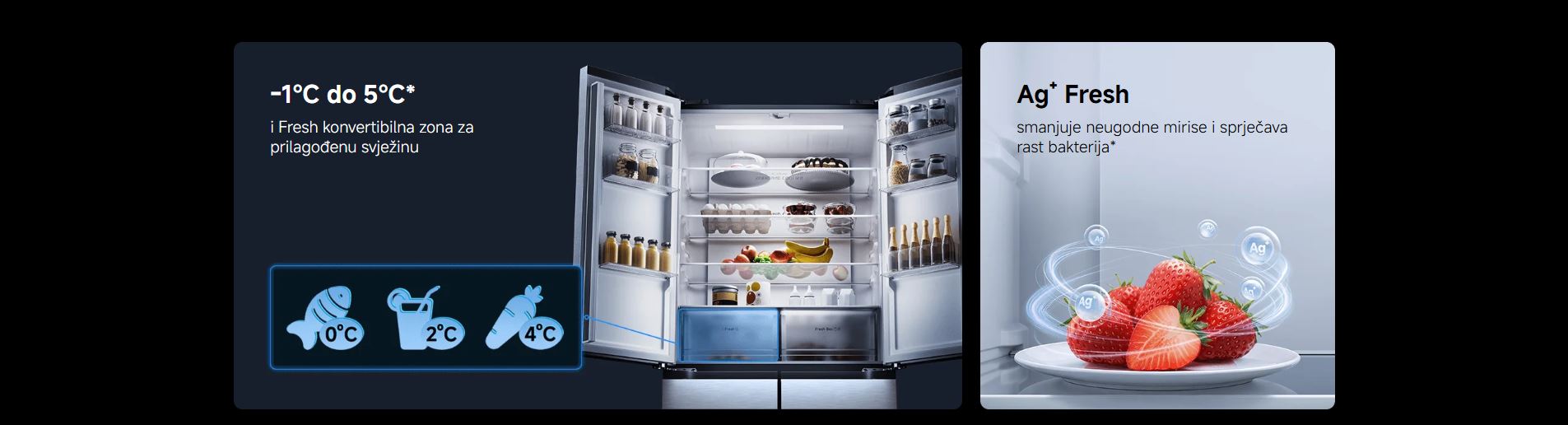 -1°C do 5°C1 i Fresh konvertibilna zona za prilagođenu svježinu.