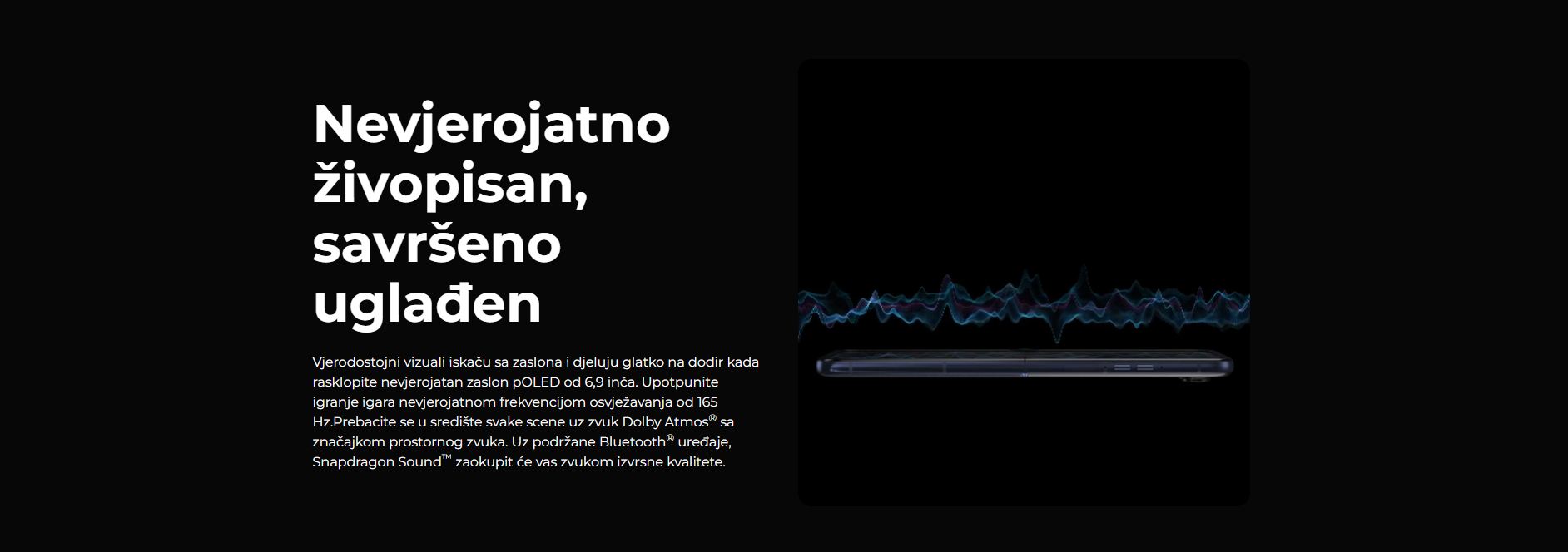 • Glavni zaslon: 6,9-inčni FHD+ pOLED, HDR10+, frekvencija osvježavanja do 165 Hz