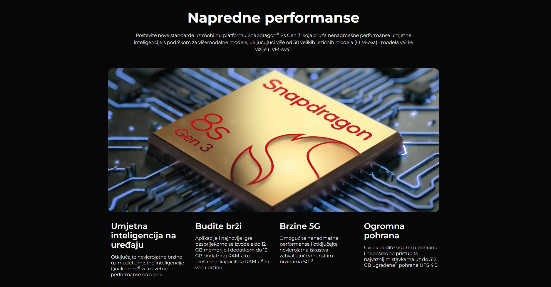 • Stražnji fotoaparat: 50 MP (f/1,7) s OIS-om, snimanje u 4K UHD (60 fps)
