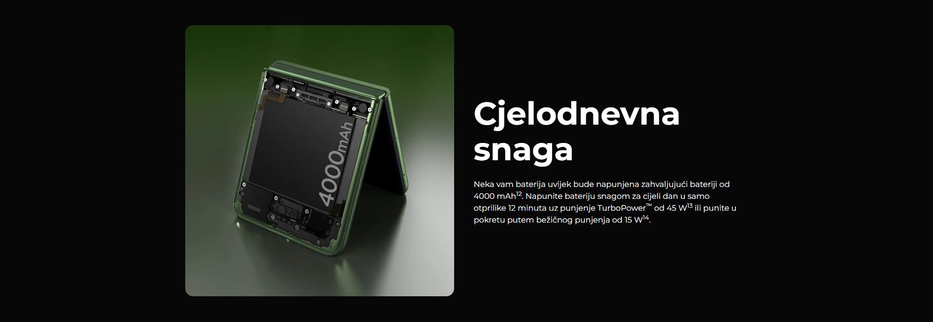 • Baterija: 4000 mAh, TurboPower™ punjenje 45 W, bežično punjenje 15 W, povratno punjenje 5 W