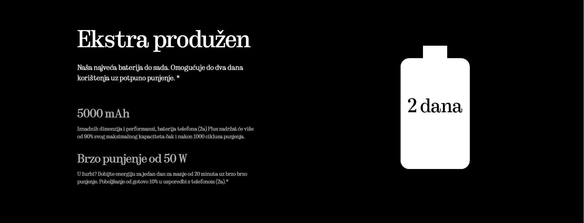 | Baterija | 5000 mAh Brzo punjenje 50 W Vrijeme punjenja za 100% snage 56 minuta Vrijeme punjenja za 50% snage 21 minuta  |