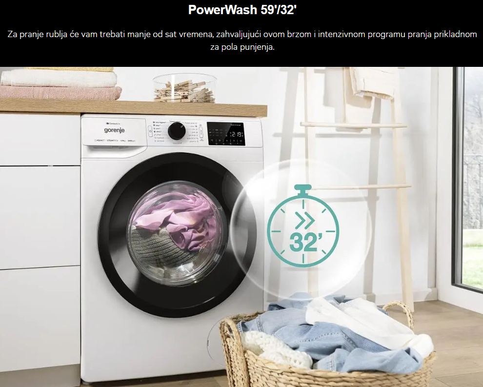 | Posebni programi pranja | Dnevno pranje Brzo pranje 20' Eco 40–60 Košulje Kućni ljubimci Dodatna higijena Perje i paperje PowerWash 59' Dječja odjeća |