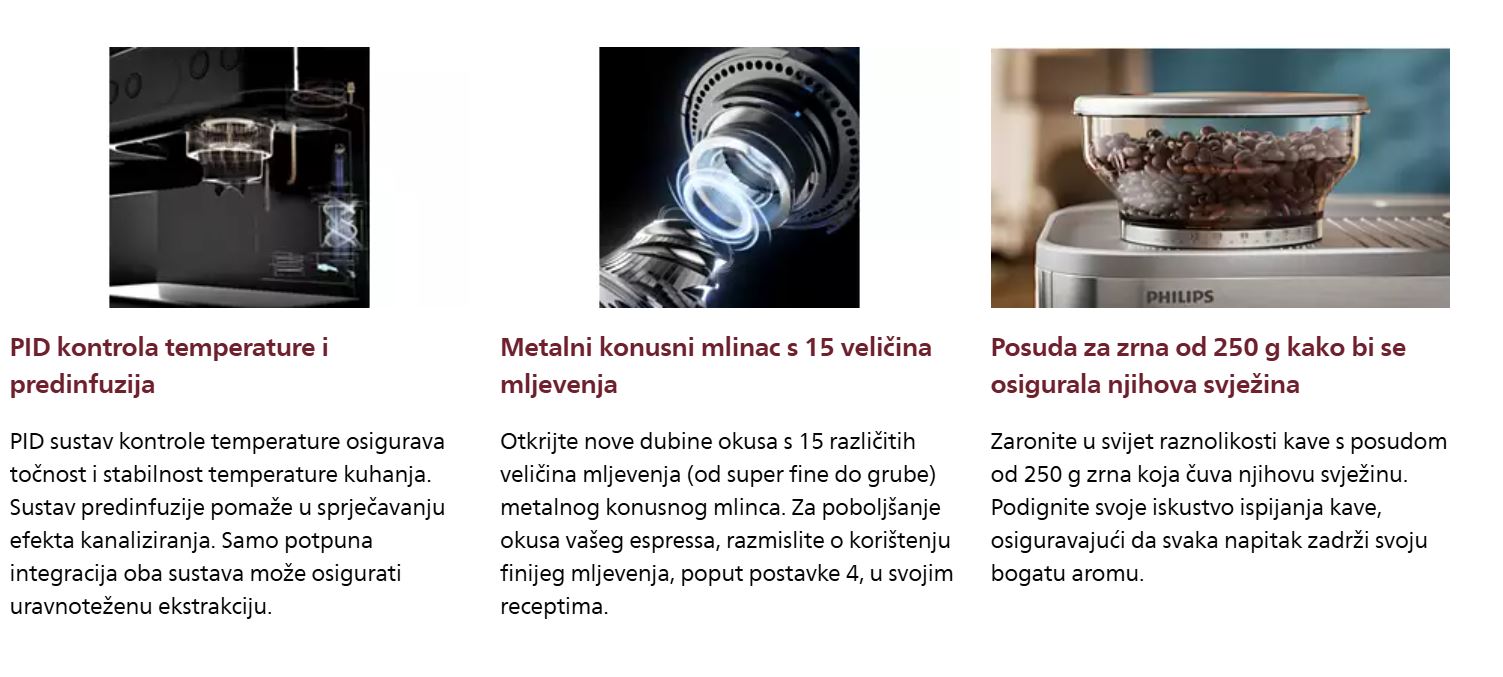 | Postavke za kavu | Pića: jednostruki i dvostruki espresso Amerikano Vruća voda Mliječna pjena Količina kave Podesivo Temperatura kave Podesivo Postavke mlinca 15 |