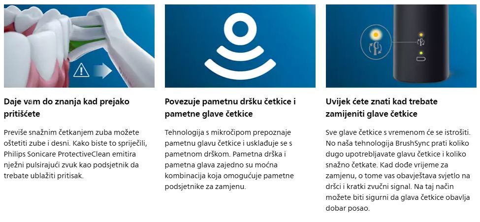 oprema četkice Tehnologija čišćenja: Zvuk kontrola tlaka: da Pokreti glave četke (u minuti)