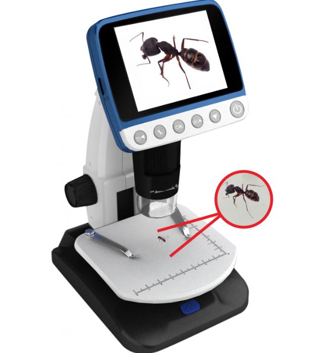 S reflecta DigiMicroscope Professional možete pregledavati i snimati objekte s izvrsnom rezolucijom od nevjerojatnih 5 megapiksela, s 8 LED osvjetljenjem i zumiranjem do 500x. Snimljene slike i videozapisi pohranjuju se na microSD memorijsku karticu. Integrirani 3,5-inčni LCD zaslon i litij-ionska baterija čine mikroskop prijenosnim istraživačkim laboratorijem. Uređaj s AV-izlazom nudi najsvestraniju upotrebu, poput npr. mjerenja i istraživanja najsitnijih objekata ili površina. Moguća područja primjene su istraživanje, studij, fakultet, posao, rekreacija i hobiji.
