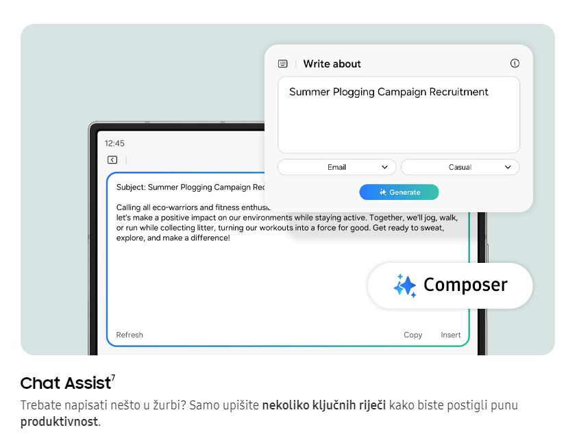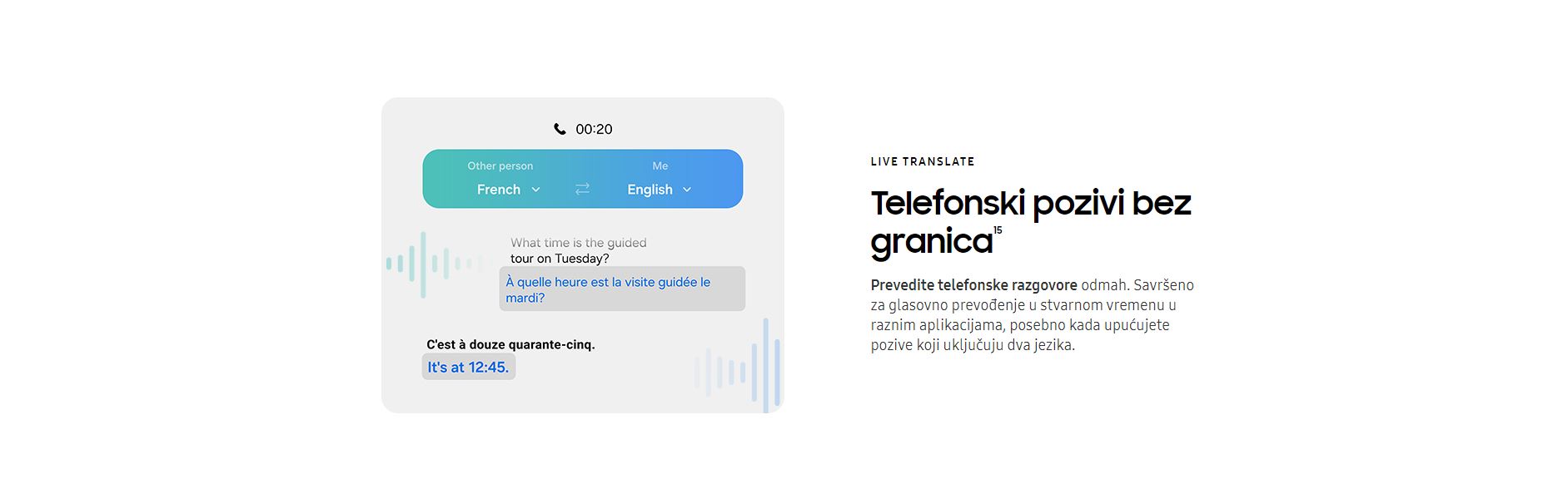| Povezivost | USB Tip-C USB 3.2 Gen 1 Tehnologija lociranjaGPS, Glonass, Beidou, Galileo, QZSS USB Tip-C Wi-Fi802.11a/b/g/n/ac/ax 2.4GHz+5GHz+6GHz, HE160, MIMO, 1024-QAM Wi-Fi Direct Bluetooth v5.3 NFC UWB (Ultra-Wideband) Sinkronizacija s računalomSmart Switch (sinkronizacija s PC računalom)  |