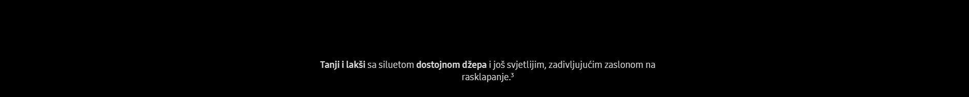 | Dimenzije | Preklopljeno                153,5 x 68,1 x 12,1 mm               Otklopljeno 153,5 x 132,6 x 5,6 mm  |