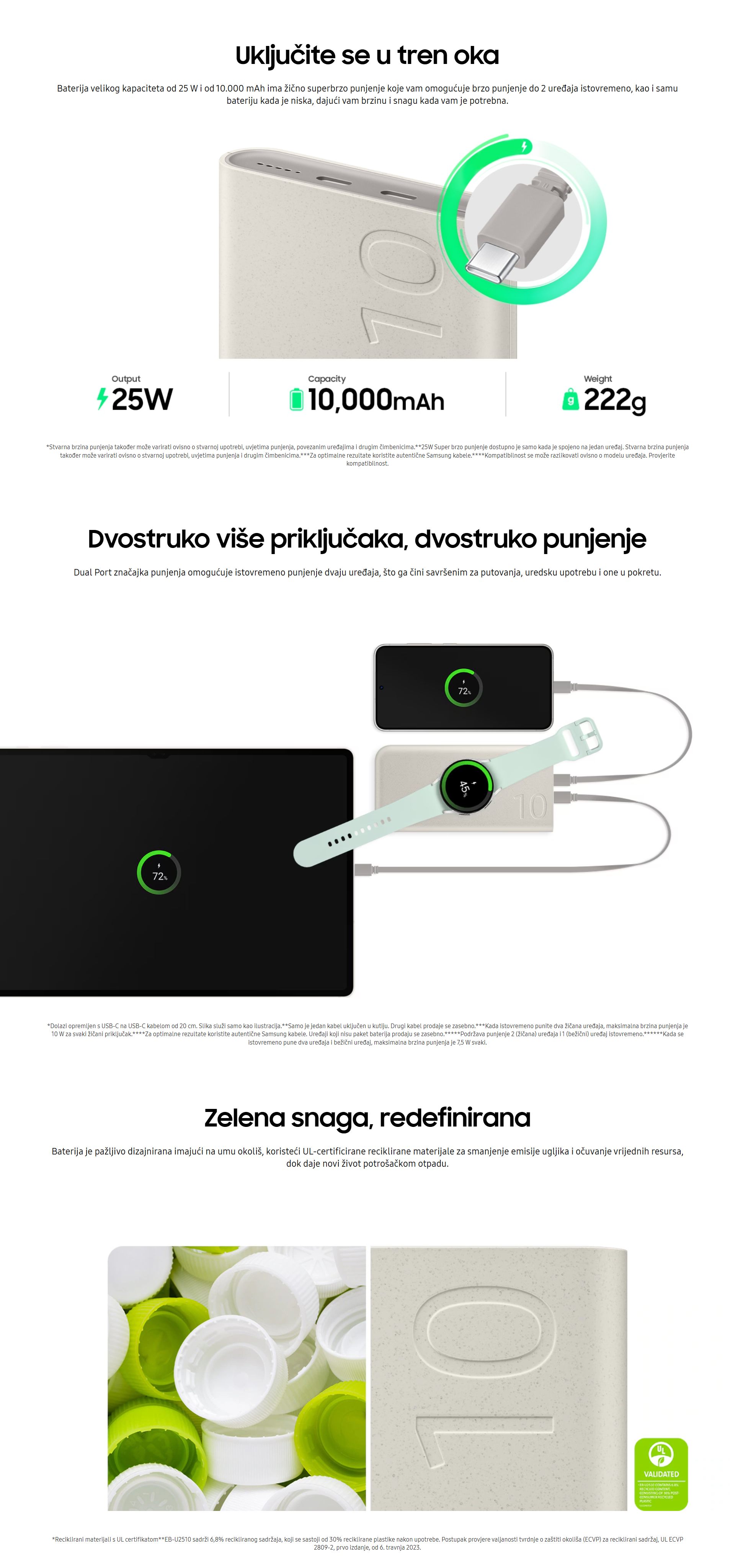 Samsung Wireless Powerbank 10.000 mAh 25W u bež nijansi osmišljen je za korisnike koji žele bežično punjenje bez traženja utičnice.