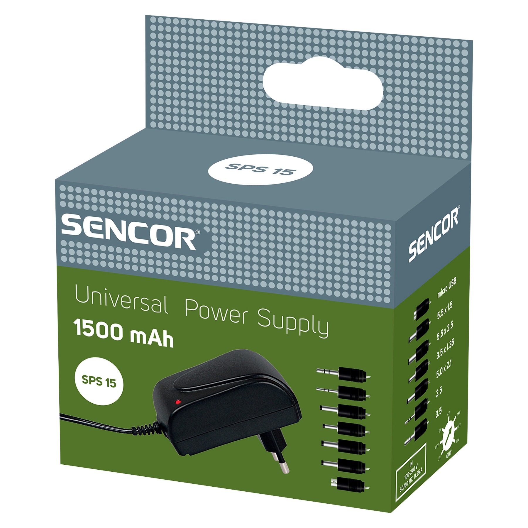 Univerzalna jedinica za napajanje Sencor SPS 15 savršena je za svakoga tko treba stabilno i fleksibilno napajanje za male elektroničke uređaje.
