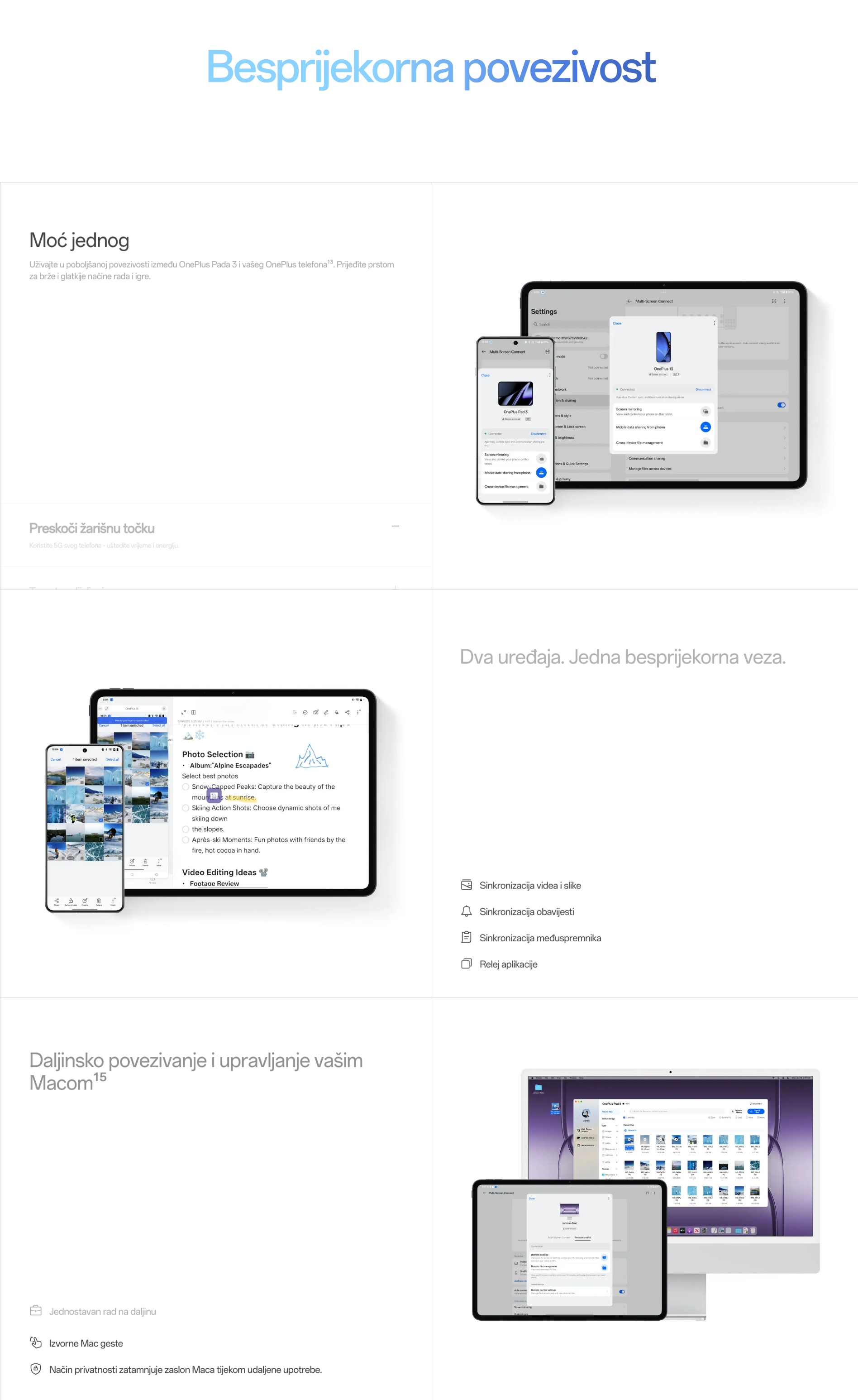 | Povezivost | Wi-Fi Wi-Fi2.4G, Wi-Fi 5G, Wi-Fi 7 (802.11be), Wi-Fi 6 (802.11ax), Wi-Fi 5 (802.11ac), 802.11a/b/g/n/ Bluetooth BR/EDR/BLE, Bluetooth 5.4, Bluetooth niske potrošnje energije, Bluetooth visoke snage Tip-C (USB3.2 Gen1 @ 5 Gbps) Priključci za audio uređaje Tip-C |
